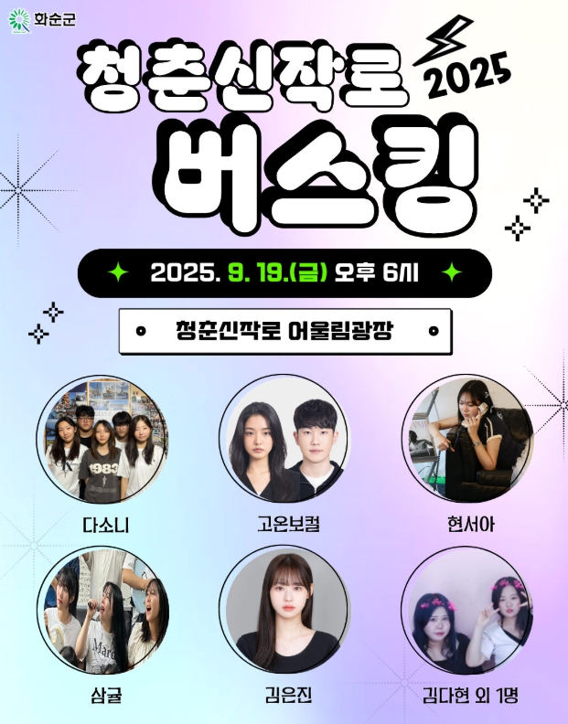 화순군은 오는 9월 19일 금요일 오후 6시 청춘신작로 어울림광장에서 버스킹 공연을 개최한다고 밝혔다.