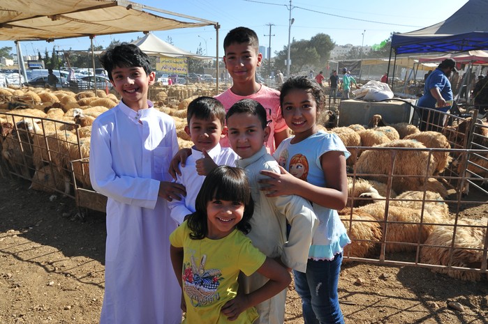 (프레스뉴스)채정병 특파원=31일(현지시간) 이슬람 최대 명절 '이드 알 아드하(희생제)' 명절 아침, 부모를 따라 양시장에 온 요르단 아이들이 밝게 웃고 있다.