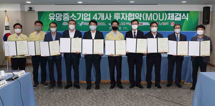 양승조 지사는 이날 협약식에서 “코로나19 장기화로 지역경기가 침체하고 있는 상황에서 이번 투자유치는 도민에게 큰 위로를 주는 낭보가 될 것”이라며 “이번 협약이 충남도는 물론 4개 기업에도 새로운 활력을 주는 계기가 되길 기대한다”고 말했다.