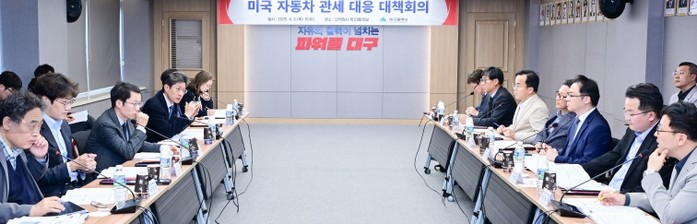 대구광역시는 3일 오전부터 시행된 미국 자동차 관세에 따른 지역 자동차 관련 기업들의 통상위기 극복을 위해 3일 오후 3시 산격청사 제1대회의실에서 자동차 관련 기관과의 대책회의를 열고, 5월 초에 ‘유관기관 통합 수출 설명회’를 개최하기로 의견을 모았다.