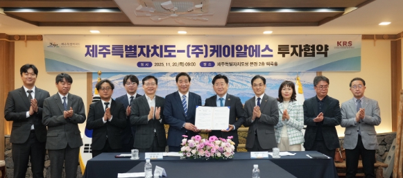제주도는 20일 제주도청 백록홀에서 ‘상장기업 육성펀드 1호’ 투자기업인 ㈜케이알에스(KRS)와 본사 이전 및 투자협약을 체결했다.