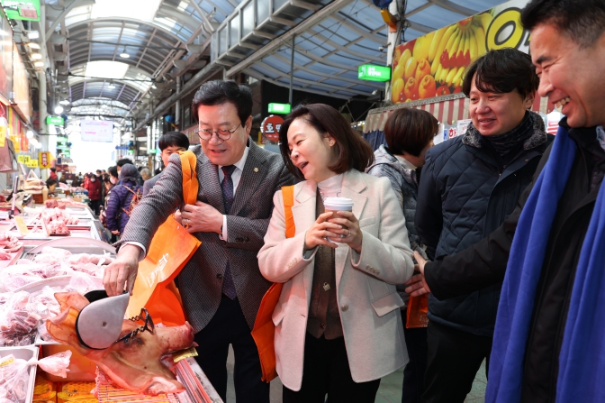 의원들은 오색시장에서 설 제수용품을 직접 구매하며 상인들의 애로사항을 청취하고 이들을 격려했다. 의원들은 또 시장 곳곳을 돌며 시민들과도 소통하며 지역 경제 활성화를 위해 전통시장을 이용해 줄 것을 당부하기도 했다.