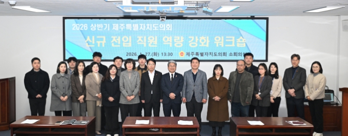 제주특별자치도의회 의회운영위원회는 지난 1월 27일, 도의회 의사당 소회의실에서 2026년 상반기 정기인사로 전입한 직원 및 실무 역량 배양이 필요한 직원들을 대상으로 ‘역량 강화 워크숍’을 개최했다.