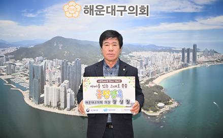 장성철 해운대구의회 의장이 아동학대 예방 릴레이 챌린지에 참여하며, 아동 보호와 긍정적인 양육 문화 확산을 위한 의지를 밝혔다.