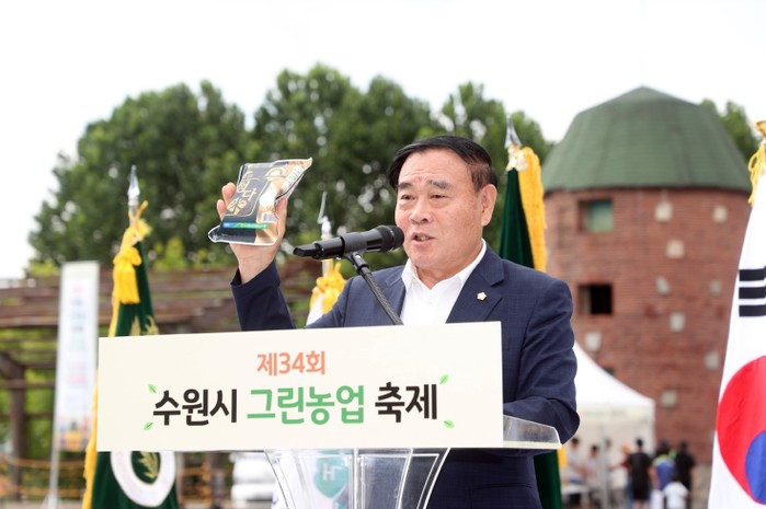 이재식 의장은 축사를 통해 “수원의 농업을 지키고 발전시켜 오신 농업인 여러분께 깊은 감사와 존경의 마음을 전한다”며, “농업은 단순히 먹을거리를 생산하는 일을 넘어, 우리의 삶과 환경을 지키는 소중한 뿌리”라고 강조했다. “이번 축제가 도시 속 농업의 의미를 다시 생각해 보고, 친환경 농업의 중요성을 나누는 뜻깊은 자리가 되길 바란다”고 덧붙였다.