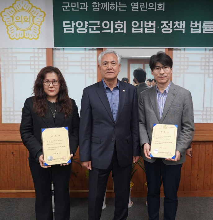 담양군의회가 27일 입법 ․ 정책 법률고문 위촉식을 갖고 박순종 ․ 우지영 교수를 신임 고문으로 위촉했다고 밝혔다.