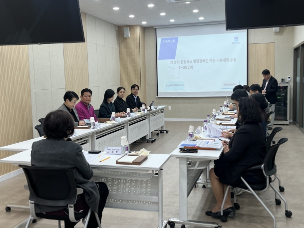 충북도는 24일 충북발달장애인지원센터 1층 회의실에서 발달장애인 전문기관 및 자문위원, 시군 담당자, 수행기관 등이 참석한 가운데 제2차 충청북도 발달장애인 지원 기본계획 수립용역 최종보고회를 개최했다고 밝혔다.
