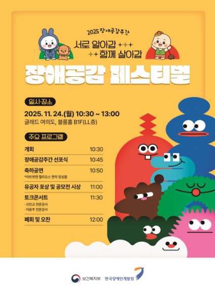 보건복지부와 한국장애인개발원은 11월 24일부터 12월 5일까지 ‘2025 장애공감주간’을 운영한다고 밝혔다.