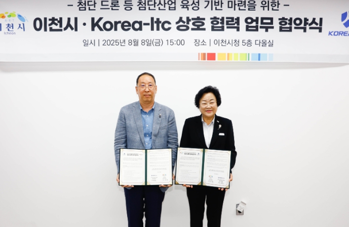 이천시는 8월 8일, 한국상호운용성기술자문(KOREA-ITC)과 함께 첨단 드론 산업 육성 기반 마련을 위한 상호 협력 업무협약을 체결했다.