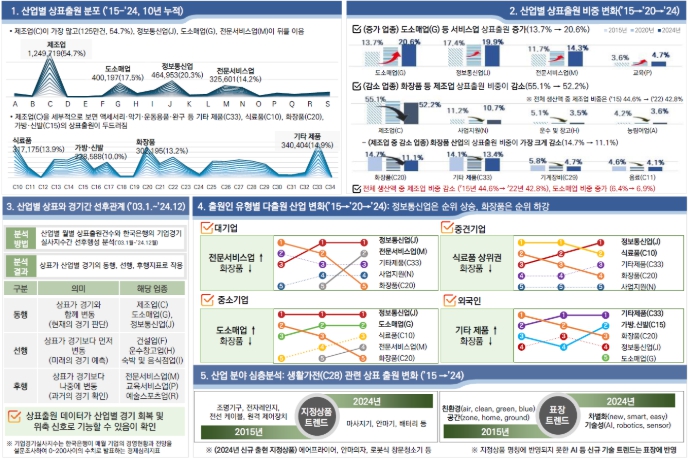 특허청은 최근 10년간(’15~’24년)의 상표 빅데이터를 기초로 산업별 상표출원 흐름, 주요·핵심 산업의 변화, 상표·경기변동의 관계, 출원인별 산업 특징 등을 분석하여 기업들이 활용할 수 있도록 제공한다고 6일 밝혔다.