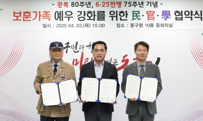 박희조 동구청장은 “이번 협약은 과거의 헌신을 기억하고 미래를 준비하는 동구형 보훈 문화의 시작”이라며 “보훈이 빛나는 동구를 만들기 위해 앞으로도 민‧관‧학의 협력체계를 더욱 강화해 나가겠다”고 전했다.