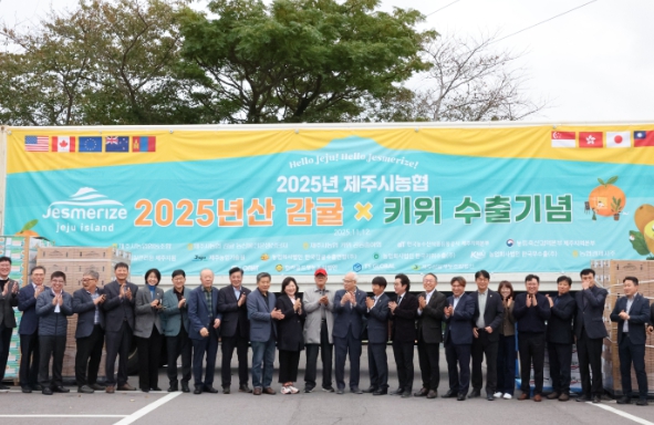 이번 상차식은 제주지역 대표 농산물인 △노지감귤 △골드키위(스위트골드) △월동무 등 3품목을 통합해 수출하는 첫 사례다.