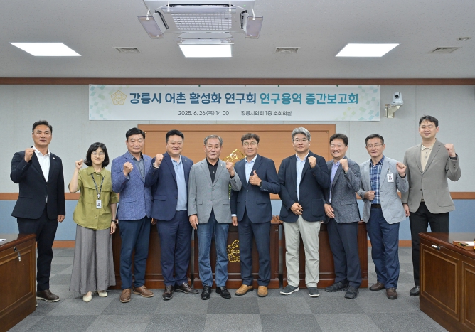강릉시의회 의원연구회인 '강릉시 어촌활성화 연구회'는 26일 오후 2시 강릉시의회 1층 소회의실에서 어촌 활성화 연구를 위한 연구용역의 중간보고회를 가졌다.