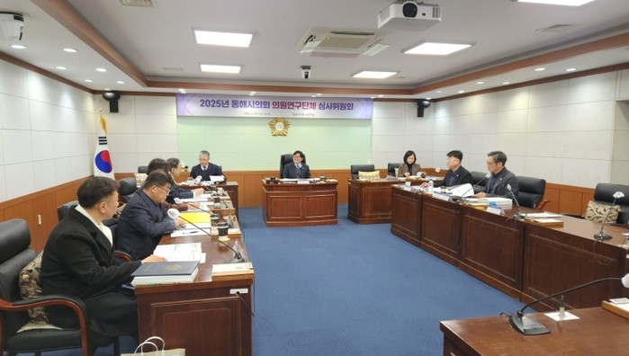 이날 심사위원회에서는 2024년 의원연구단체인 '동해시 경계선지능인 정책연구회'(대표의원 안성준), '동해시 자치법규연구회'(대표의원 정동수), '동해시 역사문화연구회'(대표의원 이동호), '동해시 환경조사연구회'(대표의원 최이순)의 연구 활동 결과를 보고 받고 평가했으며,