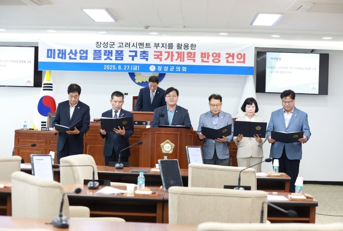 장성군의회는 6월 27일 열린 제369회 제1차 정례회 제2차 본회의에서 나철원 의원이 대표 발의한 『고려시멘트 부지 미래산업 플랫폼 조성 국가계획 반영 건의안』을 채택했다.