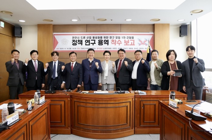 천안시의회는 의원 연구모임인 '천안시 드론산업 활성화 연구모임'이 지난 4월 14일 착수보고 간담회를 열고, 드론산업 육성을 위한 정책연구에 본격 착수했다고 15일에 밝혔다.