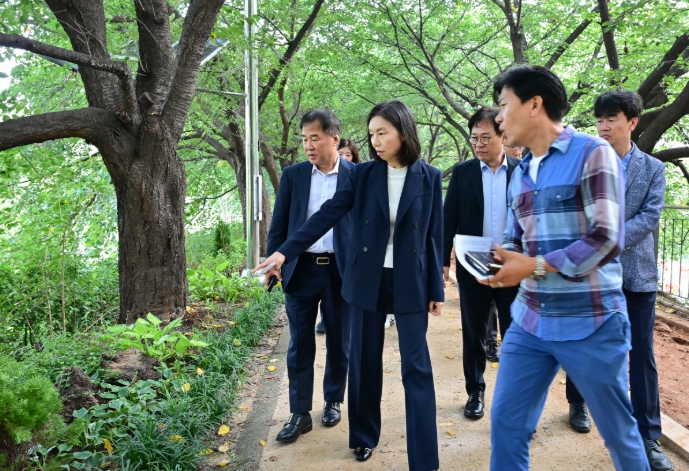 최호정 서울특별시의회 의장은 26일 안양천 생태연못 일대를 방문해 수목 등 식재된 조경 상태를 살피고 관계자들과 조경 유지관리 개선방안을 모색했다.