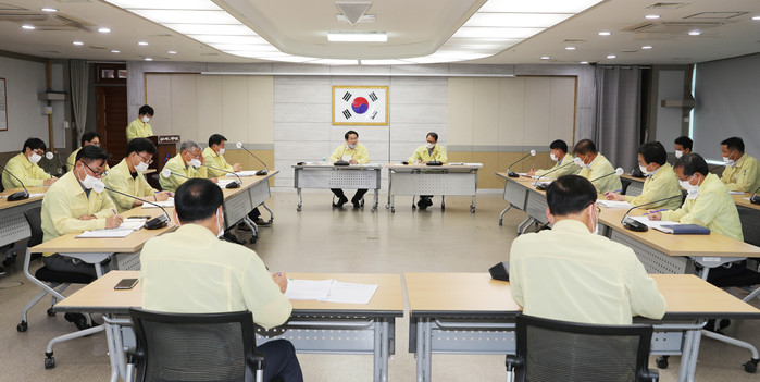 충남 아산시(시장 오세현)는 오세현 아산시장을 비롯한 수해 관련 국·소장 및 관계 부서장이 참석한 가운데 24일 시청 상황실에서 ‘코로나19 비상경제대책 및 생활방역대책 회의’를 개최했다.
