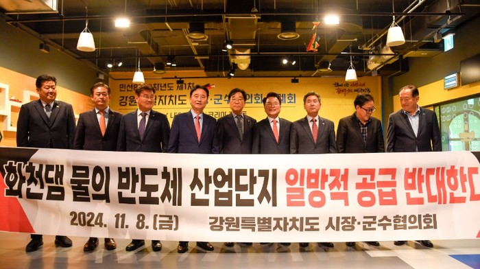 강원특별자치도 시장·군수협의회는 8일 춘천 레고랜드에서 열린 정례회에서 화천댐 물의 반도체 산업단지 공급 결정에 반대하는 결의문을 채택했다.