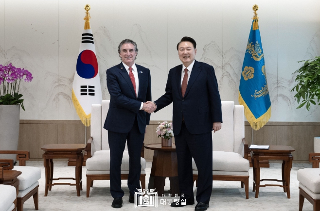 ▲ 10월 16일 윤석열 대통령은 「더그 버검(Doug Burgum)」 미국 노스다코타 주지사를 접견하고, 한-노스다코타州 간 협력 확대와 한미동맹 발전 방안에 대해 의견을 교환했다. |