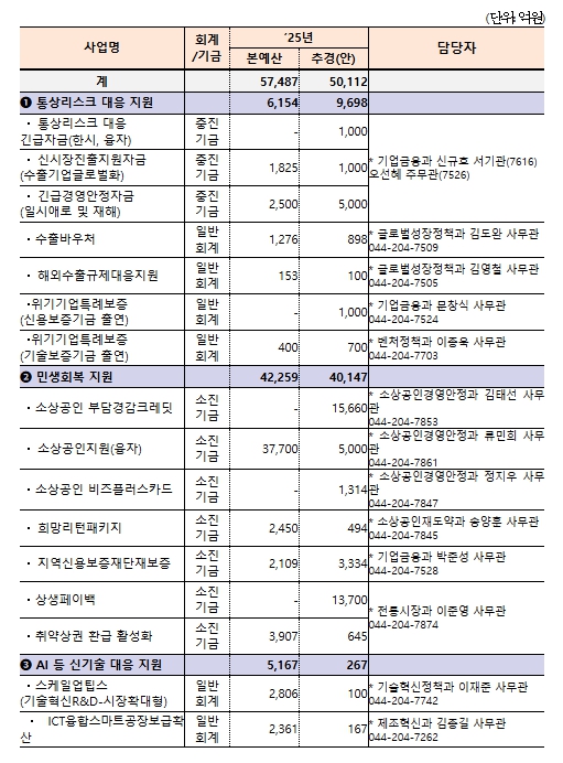 ➊통상리스크 대응 지원, ➋민생 지원, ➌AI 등 신기술 대응 지원 등 3대 분야에 대해 중점적으로 지원할 예정