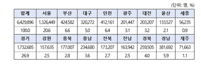 신청은 전용 누리집(상생페이백.kr)에서 11월 말까지 가능하며, 접수 첫 주(9.15.~9.21.)에 약 643만 명(6,429,896명)이 신청했다. 지역별로는 수도권(서울·경기·인천) 신청 비중이 54%(347만 명)로 나타났고, 연령별로는 30대가 26.4%, 40대 25.6%, 50대 18.9% 순으로 비중이 높았다.