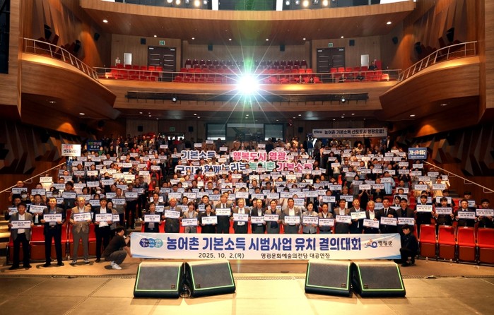 영광군은 지난 10월 2일 오후 2시, 영광문화예술의전당 대공연장에서 '농어촌기본소득 시범사업 유치 결의대회'를 성황리에 개최했다.