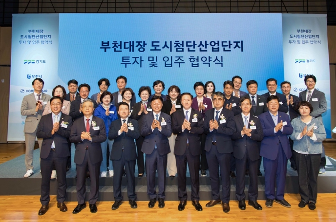 김병전 부천시의회 의장은 30일 부천아트센터 소공연장에서 열린 부천대장 도시첨단산업단지 대한항공 투자 및 입주 협약식에 참석해협약 체결을 축하했다.