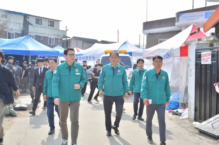 현장에는 쌀 500kg 규모의 위문품도 전달됐으며, 참석자들은 피해 지역의 빠른 회복을 함께 기원했다.
