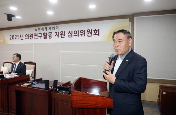 수원특례시의회는 14일 ‘수원특례시의회 의원연구활동 지원 심의위원회’를 열고 2025년도 의원연구단체의 등록과 연구활동 계획 승인에 관한 사항을 심의를 진행했다.