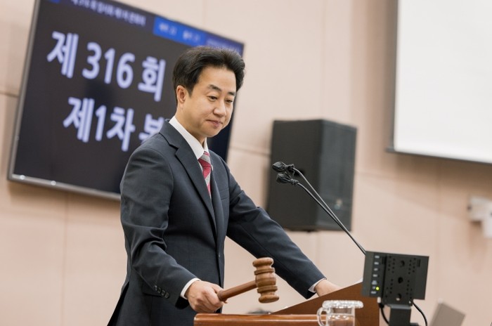 | ▲ 성북구의회 정기혁 부의장이 제316회 임시회를 주재하고 있는 모습 |