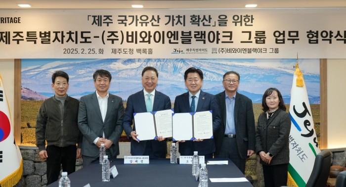 제주특별자치도는 25일 주식회사 비와이엔블랙야크 그룹과 국가유산 가치 확산을 위한 업무협약을 체결했다.