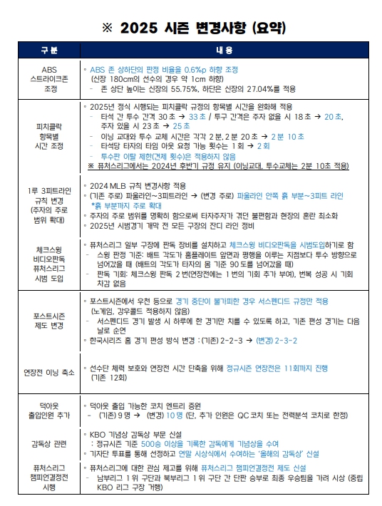 | ▲ 2025 KBO 리그 규정규칙 변경 주요사항 안내 |