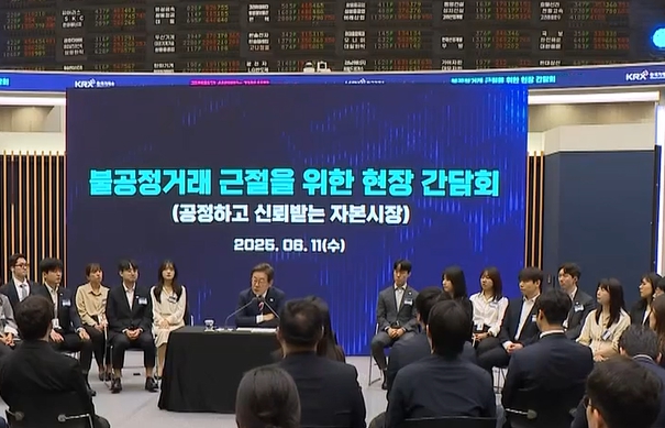 ▲ 이재명 대통령,한국거래소 시장감시위원회 방문(KTV 방송화면 캡춰) |