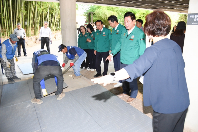 관계자로부터 조성 방향과 사업 진행 상황을 청취하고 현장 곳곳의 공정과 안전관리 상태를 면밀히 살피는 한편, 이용객들의 편의성을 높일 수 있는 구체적인 방안에 대해서도 심도 있게 논의했다.