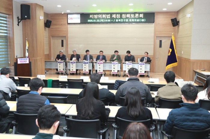 충북도의회 정책복지위원회는 23일 충북연구원 대회의실에서 ‘지방의회법 제정 및 지방의회 강화를 위한 정책토론회’를 열고 지방의회의 효율적 운영과 독립성 강화 방안 등을 논의했다.