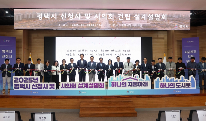 평택시의회는 3일, 평택시청 본관 2층 대회의실에서 ‘평택시 신청사 및 시의회 건립 설계설명회’에 참석해 평택시의 새로운 미래를 응원했다.