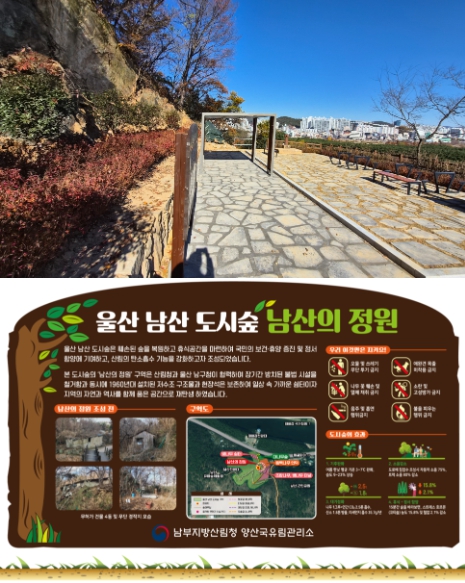 산림청 양산국유림관리소(소장 김병한)는 울산광역시 남구에 조성하는 '울산 남산 도시숲'이 '2025년 하반기 산림청 적극행정' 최우수 사례로 선정되었다고 밝혔다.