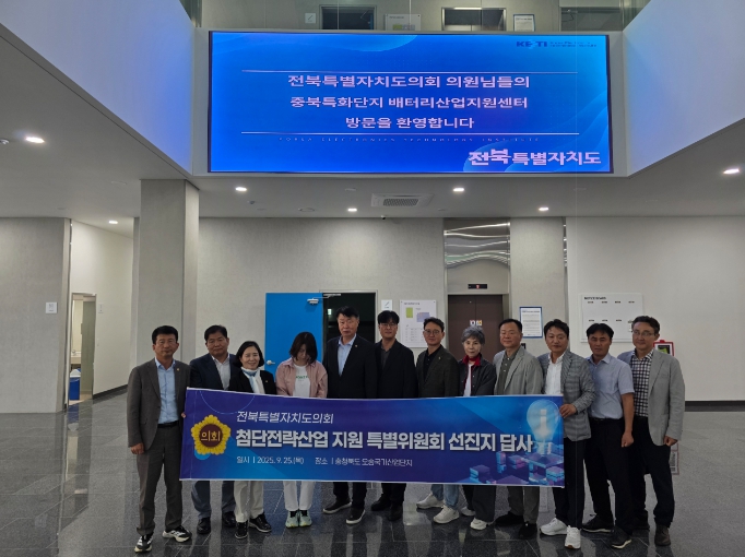 전북특별자치도의회 전북특별자치도 첨단전략산업 지원 특별위원회(위원장 김동구)는 25일 충북 청주 오송읍·오창읍 일원의 바이오 및 배터리산업 기관·기업을 찾아 벤치마킹했다.