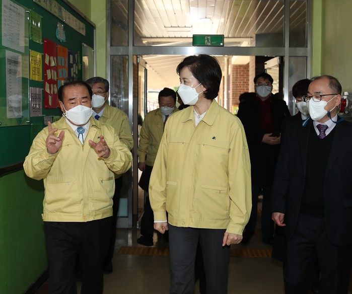 22일 교육부와 광주시교육청에 따르면 유은혜 장관은 이날 오전 10시30분 일동초를 방문해 신학기 교육과정 운영 준비 상황을 점검하고, 학교 현장 관계자들의 의견을 청취하기 위한 간담회를 진행했다.