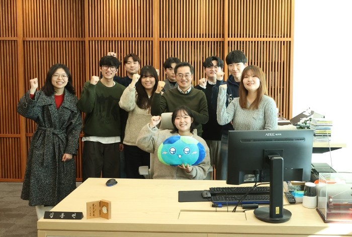 ▲ 18일 오전 경기도청 집무실에서 김동연 경기도지사가 아주대학생 9명과 함께 브라운백 미팅을 하고 기념촬영을 하고 있다. |