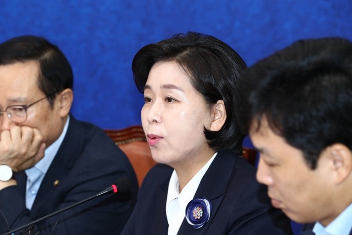 22일 국회에서 열린 더불어민주당 최고위원회의에서 발언하고 있는 양향자 민주당 최고위원의 모습. <사진=곽정일 기자> |