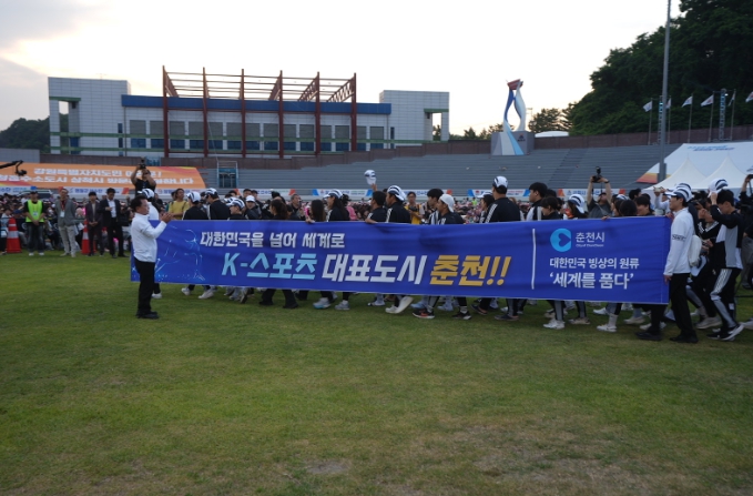 특히 이날 개회식에서는 선수단이 춘천시 국제스케이트장 유치 염원을 담은 특별 퍼포먼스를 진행해 이목을 끌었다. 이강균 춘천시체육회장은 “이번 퍼포먼스는 춘천시민 모두의 열망을 담은 상징적인 메시지로 국제스케이트장 유치를 통해 춘천이 사계절 스포츠 중심 도시로 도약할 수 있기를 기대한다”고 말했다.