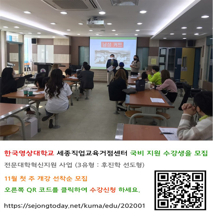 한편 교육부와 한국연구재단이 주관하는 혁신지원사업 후진학 선도형에 선정된 한국영상대는 지역 직업교육 거점센터로 경력단절여성, 직업전환 예정자, 재직자 등 수강생들이 참가하는 수업을 진행하고 있다.