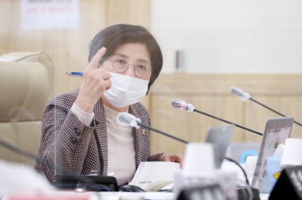 | ▲ 김미숙 의원, 소통협치국 행감 중 공정무역위원회 위원의 공정무역 사업독점 질타 |