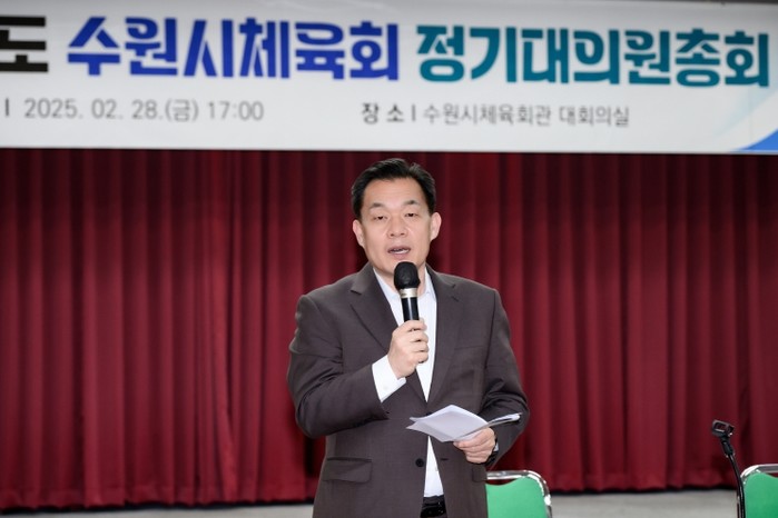 이재준 수원시장이 ‘2025년 수원시체육회 정기대의원 총회’에 참석해 “수원시체육회가 ‘체육 선진도시 수원’을 만드는 데 큰 역할을 해주길 바란다”고 당부했다.