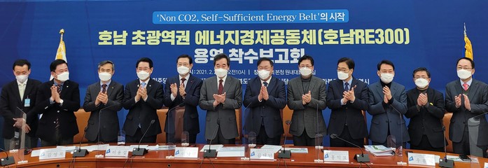 [전남=프레스뉴스] 강래성 기자=전라남도는 24일 광주광역시, 전라북도, 더불어민주당과 함께 호남 초광역권 에너지경제공동체를 구성하고 ‘호남 RE300 구축 사전용역’을 착수했다고 밝혔다.