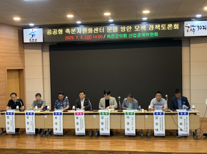 옥천군의회는 4일 옥천농업기술센터 농업인교육관에서 산업경제위원회(위원장 송윤섭) 주관으로 공공형 축분자원화센터 운영 방안 모색(바이오차 중심으로)을 주제로 정책토론회를 개최했다.