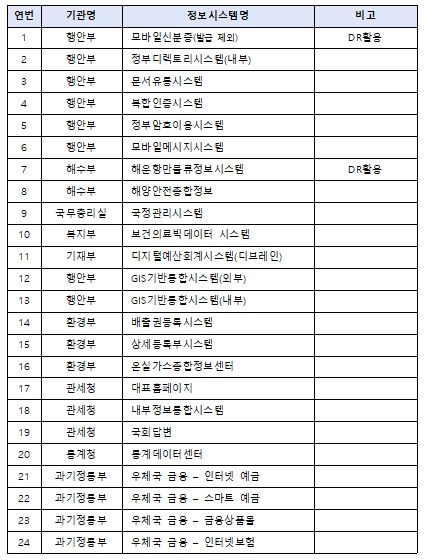 또한, 지자체등 기관 차원의 정확한 안내, 대응을 위해 96개 시스템 목록을 제공한다