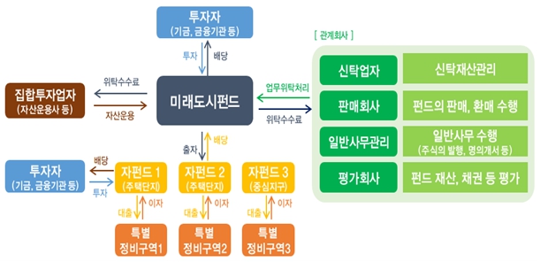 미래도시펀드는 대규모 재원이 소요되는 노후계획도시정비사업의 초기사업비, 공사비 등을 안정적으로 조달하기 위해 조성하는 정책펀드이다.